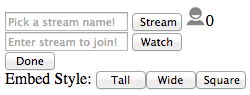 – genEmbed(width,height): Generate an embeddable code for the stream.